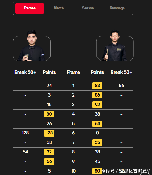 第七局,两东说念主伸开拉锯战,胶著的比赛中,吴宜泽以55-53两分险胜,比分上风扩大到5-2并赢得三个赛点。
