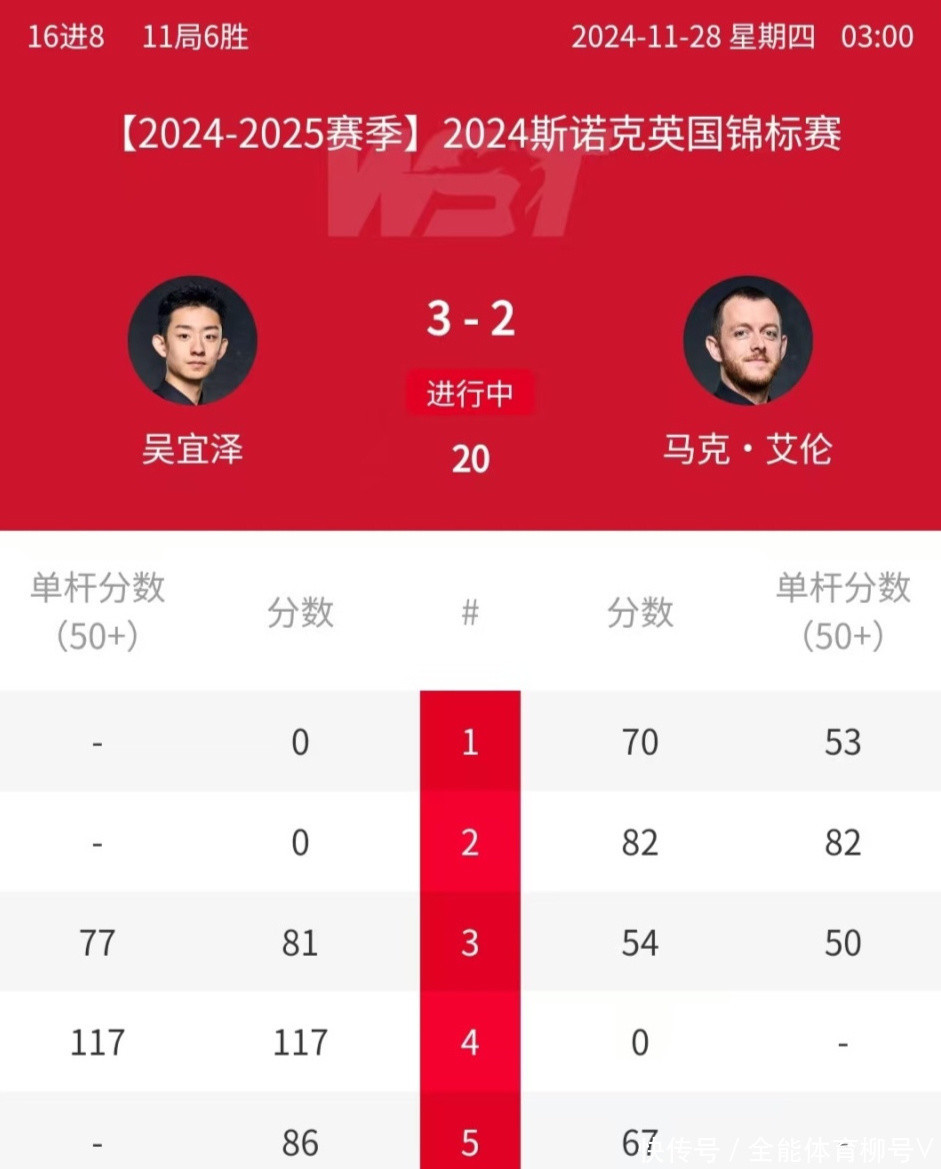 第十局,吴宜泽再也莫得给敌手契机,他打出单杆52分,80-5锁定胜局,总比分6-4降服这位13号种子,强势晋级16强。第二轮,吴宜泽挑战4号种子“小钢炮”艾伦,敌手2-0强势开局,吴宜泽绝不示弱体育集锦,他连扳三局以3-2反超比分。
