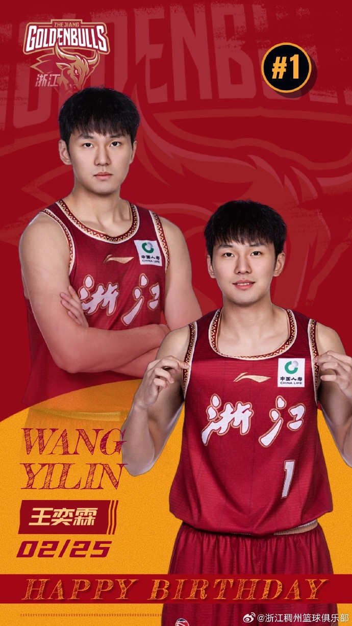 2月25日讯 今天是浙江男篮球员王奕霖的22岁诞辰,浙江男篮官博为其奉上诞辰祝愿。