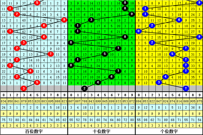 (2)在号码频次方面,开出个数最少的三个号码为:3、8、0,一般来说这三个号码不会同期出现;开出个数最多的四个号码辞别为:1、5、7、2,本期看好这四个号码中包含1-2个开奖号码,防卫号码7。