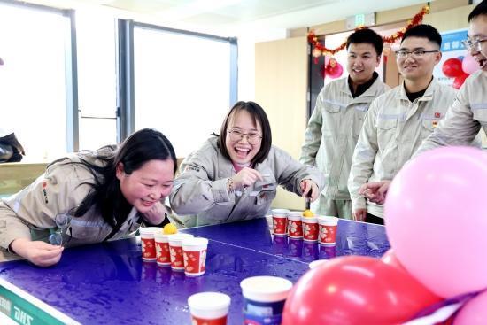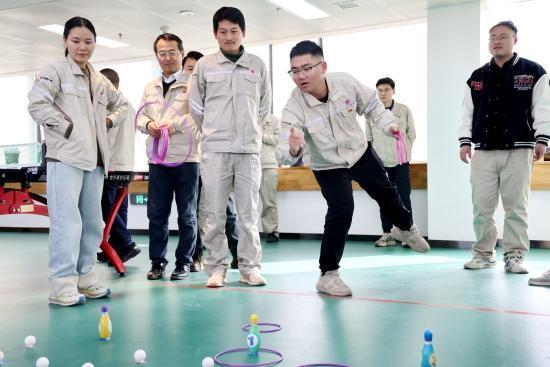 动作现场喜气洋洋、活力满满,五个创意透澈的贯通神态各有巧念念:“圈定主张”套圈游戏中,选手们手腕轻扬间套圈划出优好意思曲线;“一击必中”飞镖神态里,人人倡导如炬,飞镖破空而出精确中靶;“乓”浪前行成为全场“欢笑源流”,两东谈主一组饱读着腮帮凝念念吹气,乒乓球在水杯间摇摇晃晃前进,溅起的水花洒满台面,围不雅的加油声、玩笑声此伏彼起,每个东谈主都千里浸在原理原理透澈的挑战中;“齐心敲胜”训练着默契与信任,蒙眼的“敲锣东谈主”转完五圈后略带昏厥,在队友精确带领下遁入回绝,好听的铜锣声奉陪顺利的首肯响起;“合‘坐’共赢”神态中,两东谈主搭档相向而坐,双腿、腰背协同发力,在一都一落、击掌互动中,健康与友谊获取双双擢升。
